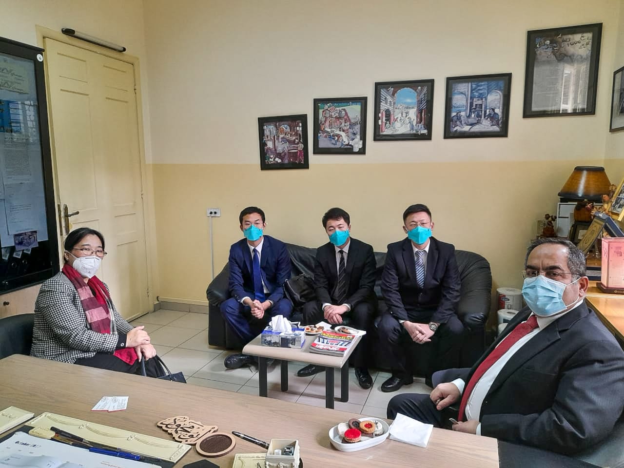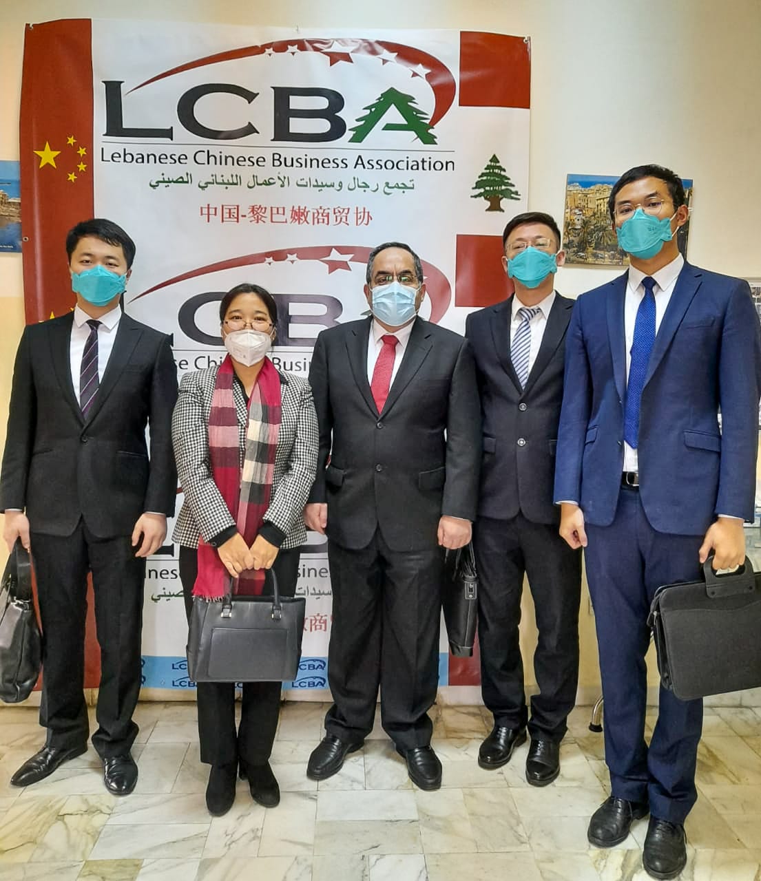 The delegation included Ms. Li Jing, Economic and Commercial Consul at the Chinese Embassy in Lebanon; Mr. Wang Gang, Secretary of the Economic and Commercial Section; Mr. Jin Lujian, Secretary of the Consular Section; and Mr. Wei Lun, Secretary of the Political Section.