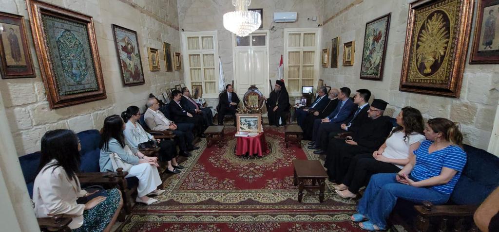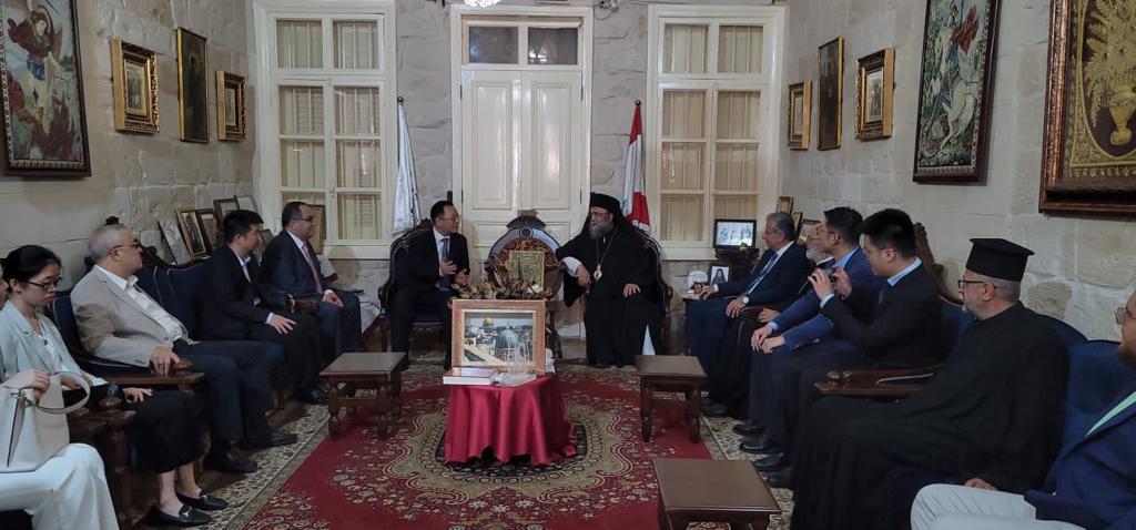 During his tour, the Ambassador and his delegation visited the Akkar Greek Orthodox Diocese, where Bishop Bassilios Mansour received them in the presence of former MP Nidal Ta’meh and several priests; the official Tekrit Institute, where the Ambassador inspected the IT laboratory established by the Chinese Embassy in 2018, welcomed by Director Ziad Al Sanea and the teaching staff.