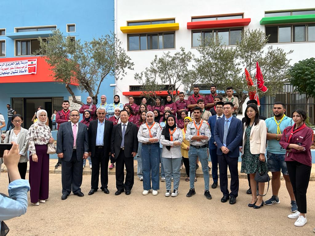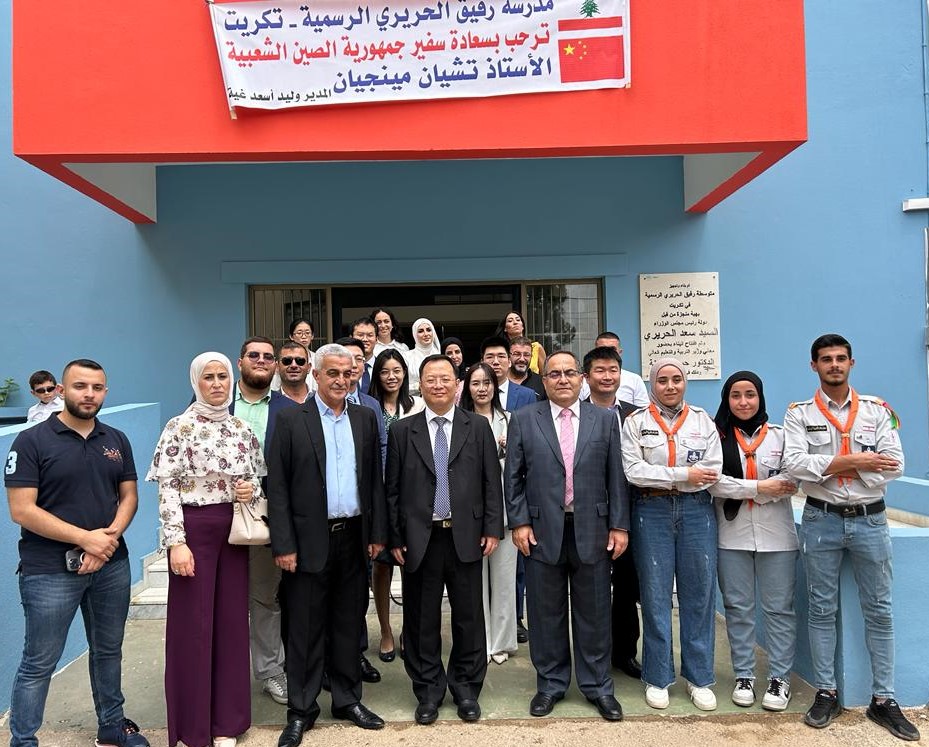 The delegation also visited Rafiq Hariri Official School in Tekrit, where Director Walid Gheia said: “On behalf of the teaching staff, we welcome Ambassador Qian Minjian. China is a great nation that has left its mark on civilization and history. It has rightly earned the title of a world giant and serves as a beacon admired by nations everywhere. China is, in short, a bright presence across the world. Ambassador, we welcome you to this educational institution and hope China leaves a shining mark here. Long live the People’s Republic of China, and long live Lebanon. Welcome.”